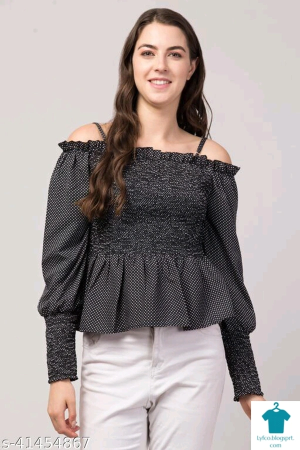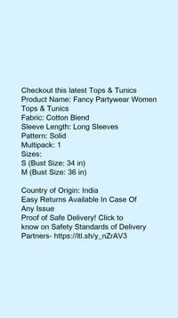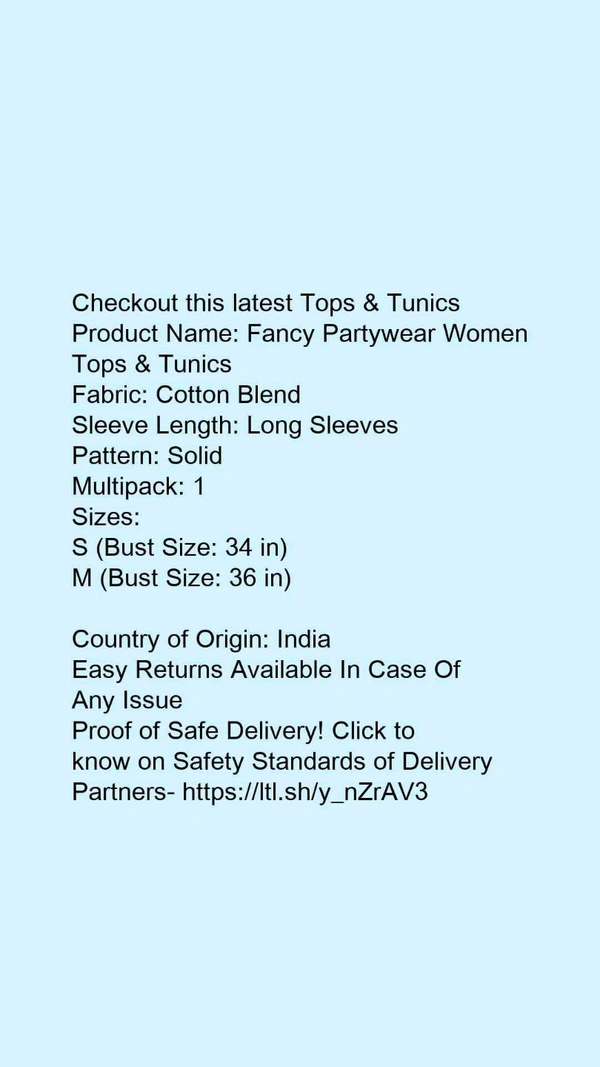 Product Name: *Fancy Partywear Women Tops & Tunics*Fabric: Cotton BlendSleeve Length: Long SleevesPattern: SolidMultipack: 1