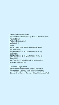 Product Name: *Fancy Trendy Women Western Skirts*Fabric: RayonPattern: EmbroideredMultipack: 1