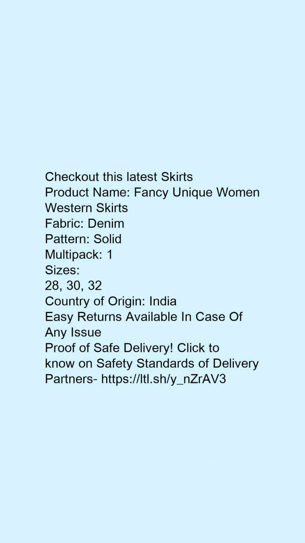 Product Name: *Fancy Unique Women Western Skirts*Fabric: DenimPattern: SolidMultipack: 1