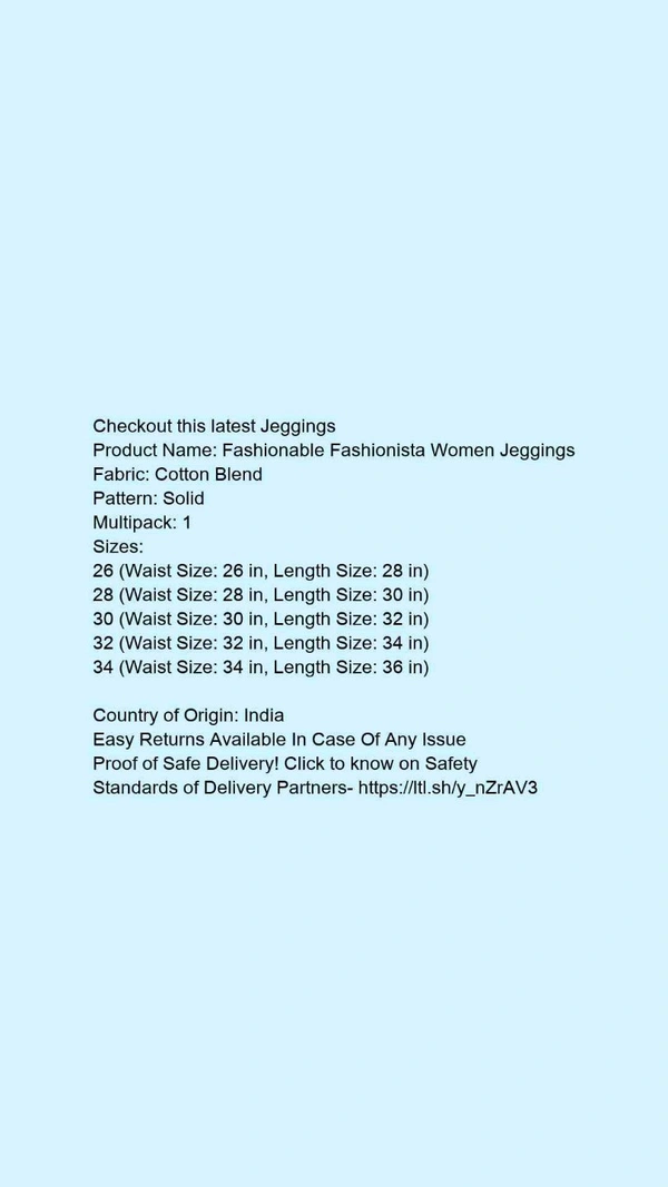 Product Name: *Fashionable Fashionista Women Jeggings*Fabric: Cotton BlendPattern: SolidMultipack: 1