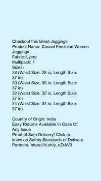 Product Name: *Fashionable Fashionista Women Jeggings*Fabric: LycraMultipack: 1