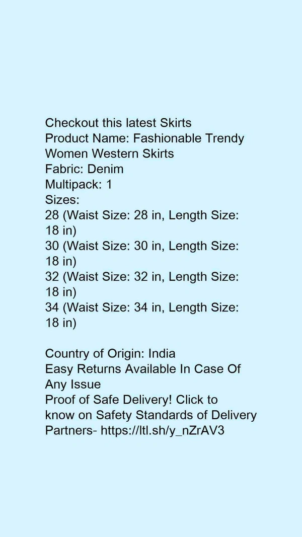 Product Name: *Fashionable Trendy Women Western Skirts*Fabric: DenimMultipack: 1