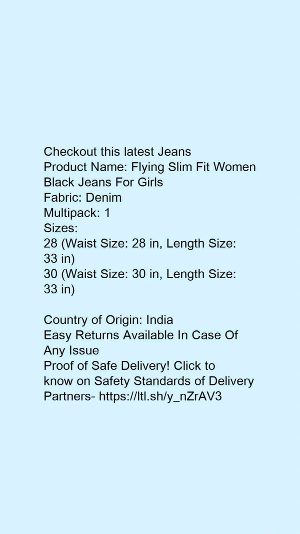 Product Name: *Flying Slim Fit Women Black Jeans For Girls*Fabric: DenimMultipack: 1