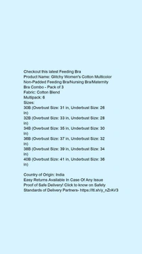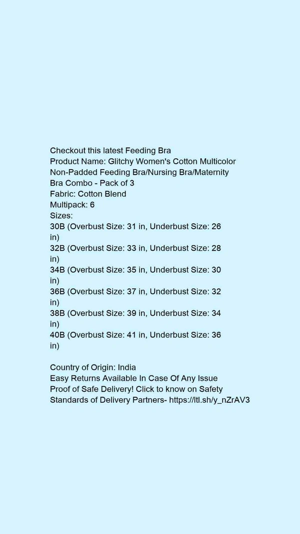 Product Name: *Glitchy Women's Cotton Multicolor Non-Padded Feeding Bra/Nursing Bra/Maternity Bra Combo - Pack of 3*Fabric: Cotton BlendMultipack: 6