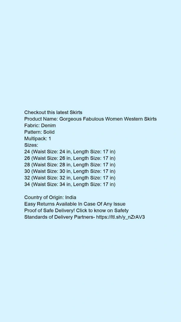 Product Name: *Gorgeous Fabulous Women Western Skirts*Fabric: DenimPattern: SolidMultipack: 1