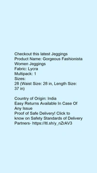 Product Name: *Gorgeous Fashionista Women Jeggings*Fabric: LycraMultipack: 1