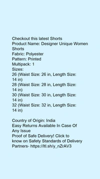 Product Name: *Gorgeous Feminine Women Shorts*Fabric: PolyesterPattern: PrintedMultipack: 1