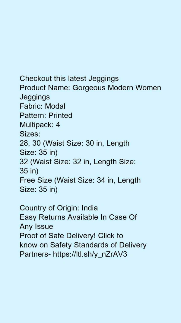 Product Name: *Gorgeous Modern Women Jeggings*Fabric: ModalPattern: PrintedMultipack: 4