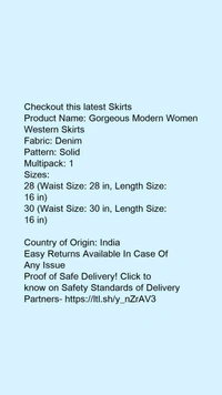 Product Name: *Gorgeous Modern Women Western Skirts*Fabric: DenimPattern: SolidMultipack: 1