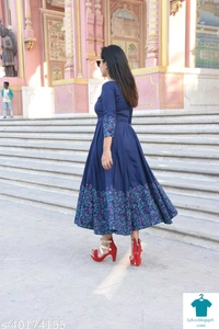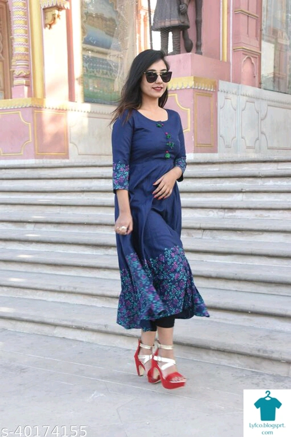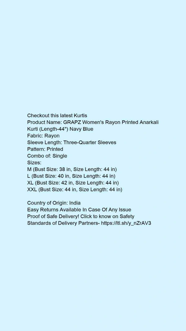 Product Name: *GRAPZ Women's Rayon Printed Anarkali Kurti (Length-44") Navy Blue *Fabric: RayonSleeve Length: Three-Quarter SleevesPattern: PrintedCombo of: Single