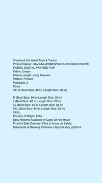 Product Name: *HAVYAA WOMEN'S ROUND NECK CREPE FABRIC DIGITAL PRINTED TOP *Fabric: CrepeSleeve Length: Long SleevesPattern: PrintedMultipack: 2