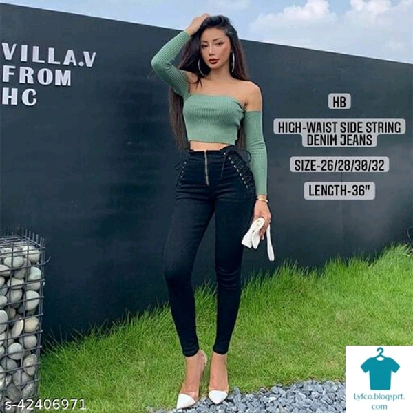 Product Name: *High-Waist side string denim jeans by High-Buy- BLACK*Fabric: DenimSurface Styling: Tie-UpsMultipack: 1
