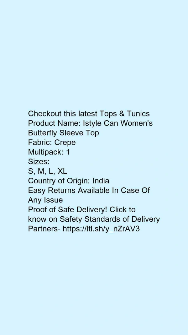 Product Name: *Istyle Can Women's Butterfly Sleeve Top*Fabric: CrepeMultipack: 1