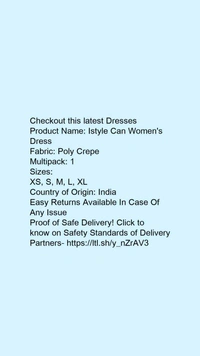 Product Name: *Istyle Can Women's Dress*Fabric: Poly CrepeMultipack: 1