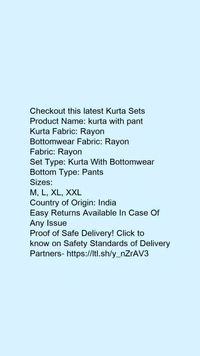 Product Name: *kurta with pant*Kurta Fabric: RayonBottomwear Fabric: RayonFabric: RayonSet Type: Kurta With BottomwearBottom Type: Pants