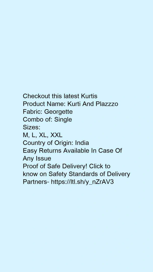 Product Name: *Kurti And Plazzzo*Fabric: GeorgetteCombo of: Single