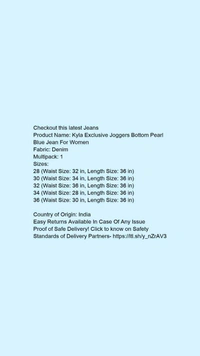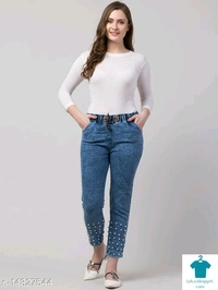 Product Name: *Kyla Exclusive Joggers Bottom Pearl Blue Jean For Women*Fabric: DenimMultipack: 1