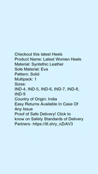 Product Name: *Latest Women Heels*Material: Syntethic LeatherSole Material: EvaPattern: SolidMultipack: 1