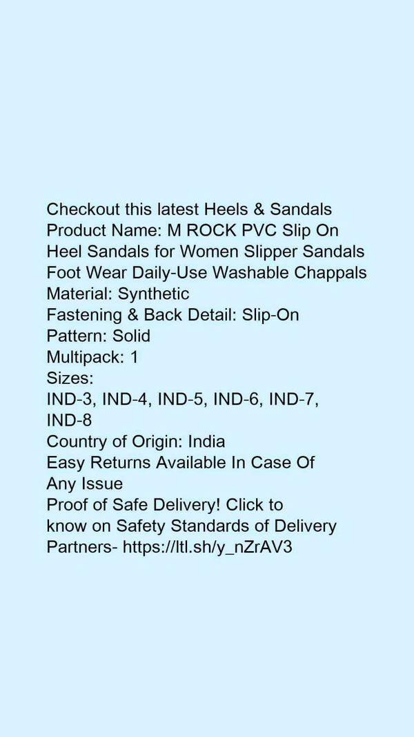 Product Name: *M ROCK PVC Slip On Heel Sandals for Women Slipper Sandals Foot Wear Daily-Use Washable Chappals*Material: SyntheticFastening & Back Detail: Slip-OnPattern: SolidMultipack: 1