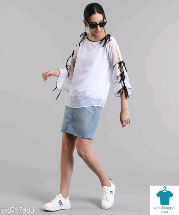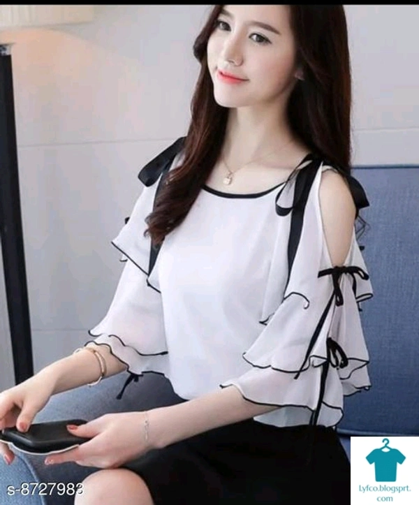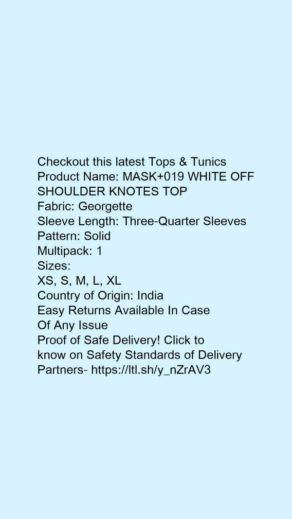 Product Name: *MASK+019 WHITE OFF SHOULDER KNOTES TOP*Fabric: GeorgetteSleeve Length: Three-Quarter SleevesPattern: SolidMultipack: 1
