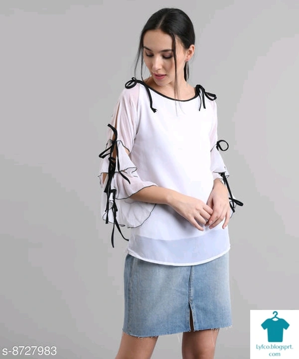 Product Name: *MASK+019 WHITE OFF SHOULDER KNOTES TOP*Fabric: GeorgetteSleeve Length: Three-Quarter SleevesPattern: SolidMultipack: 1
