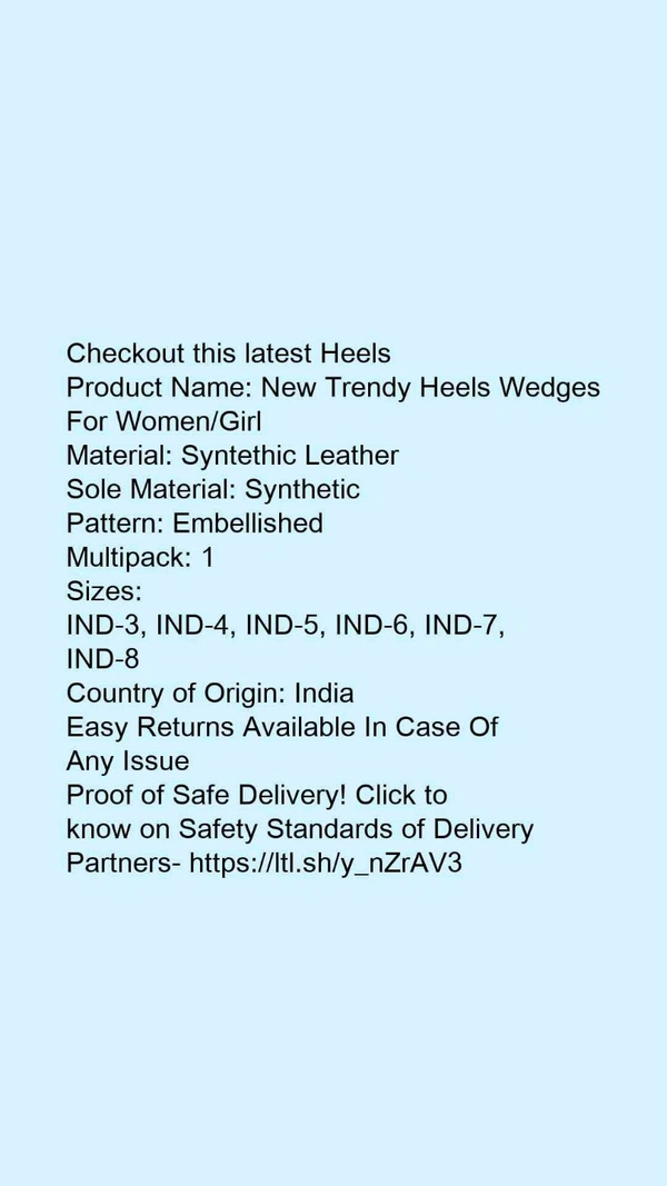 Product Name: *New Trendy Heels Wedges For Women/Girl*Material: Syntethic LeatherSole Material: SyntheticPattern: EmbellishedMultipack: 1