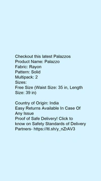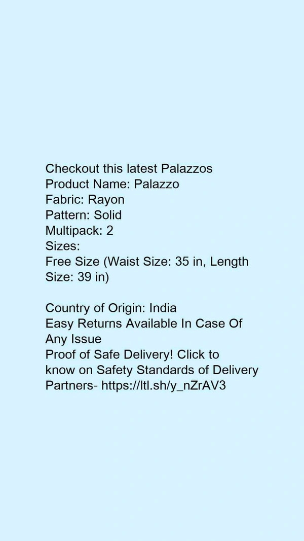 Product Name: *Palazzo*Fabric: RayonPattern: SolidMultipack: 2