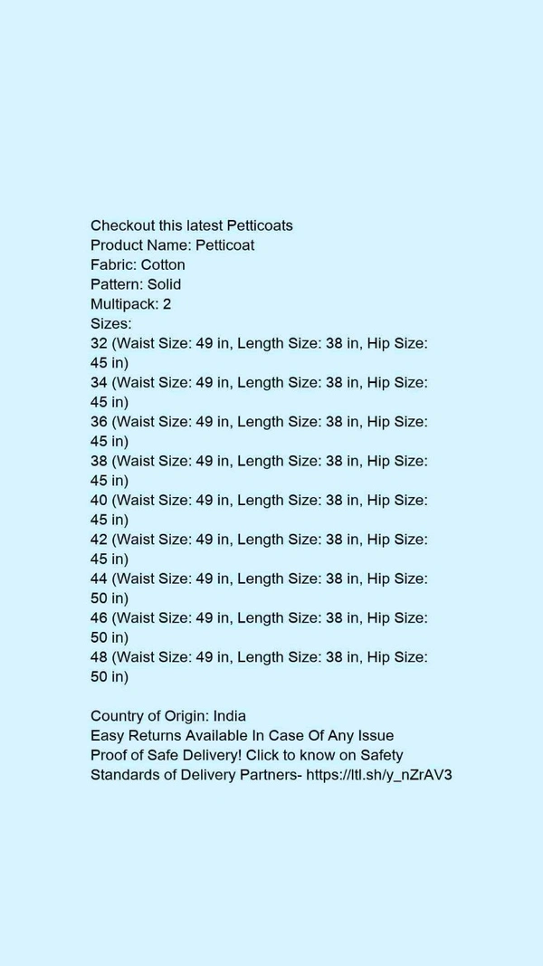 Product Name: *Petticoat*Fabric: CottonPattern: SolidMultipack: 2