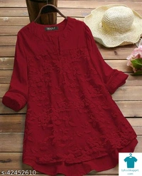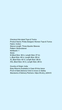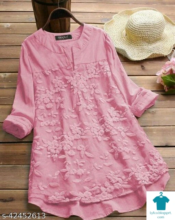 Product Name: *Pretty Designer Women Tops & Tunics*Fabric: CottonSleeve Length: Three-Quarter SleevesPattern: EmbroideredMultipack: 1