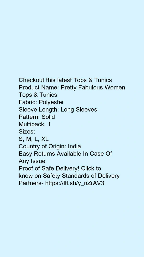 Product Name: *Pretty Fabulous Women Tops & Tunics*Fabric: PolyesterSleeve Length: Long SleevesPattern: SolidMultipack: 1