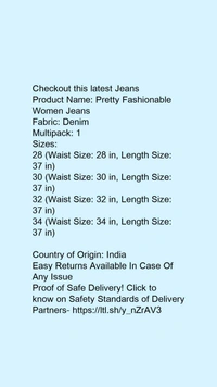 Product Name: *Pretty Fashionable Women Jeans*Fabric: DenimMultipack: 1