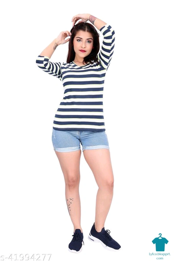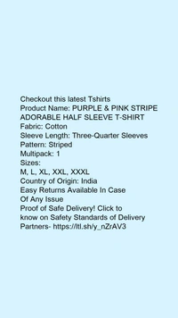 Product Name: *PURPLE & PINK STRIPE ADORABLE HALF SLEEVE T-SHIRT*Fabric: CottonSleeve Length: Three-Quarter SleevesPattern: StripedMultipack: 1