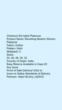 Product Name: *Ravishing Modern Women Palazzos*Fabric: CottonPattern: SolidMultipack: 5