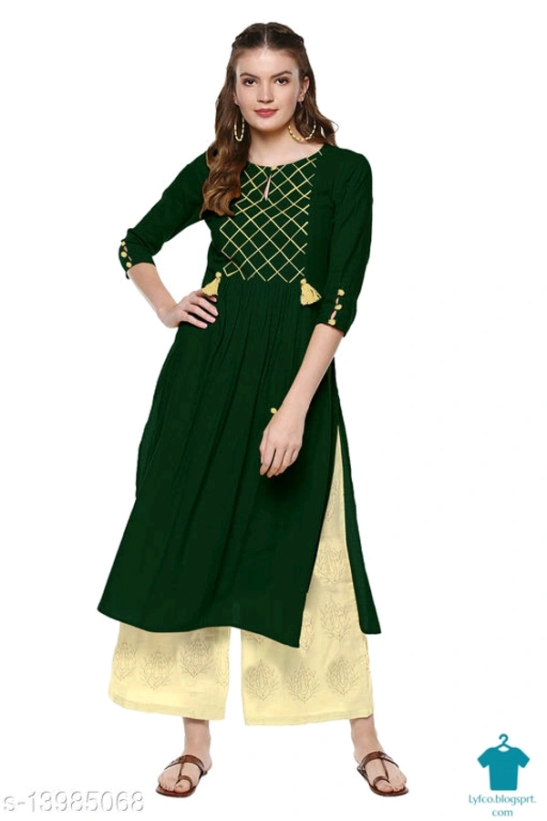 Product Name: *Rayon A-line kurti for women*Fabric: RayonSleeve Length: Three-Quarter SleevesPattern: SolidCombo of: Single