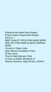 Product Name: *Royal Hand Gripper*Pack of: 1BEST QUALITY 2PCS FOM HAND GRIPS AND 1PC FOM HAND PLASTIC SKIPING ROPE