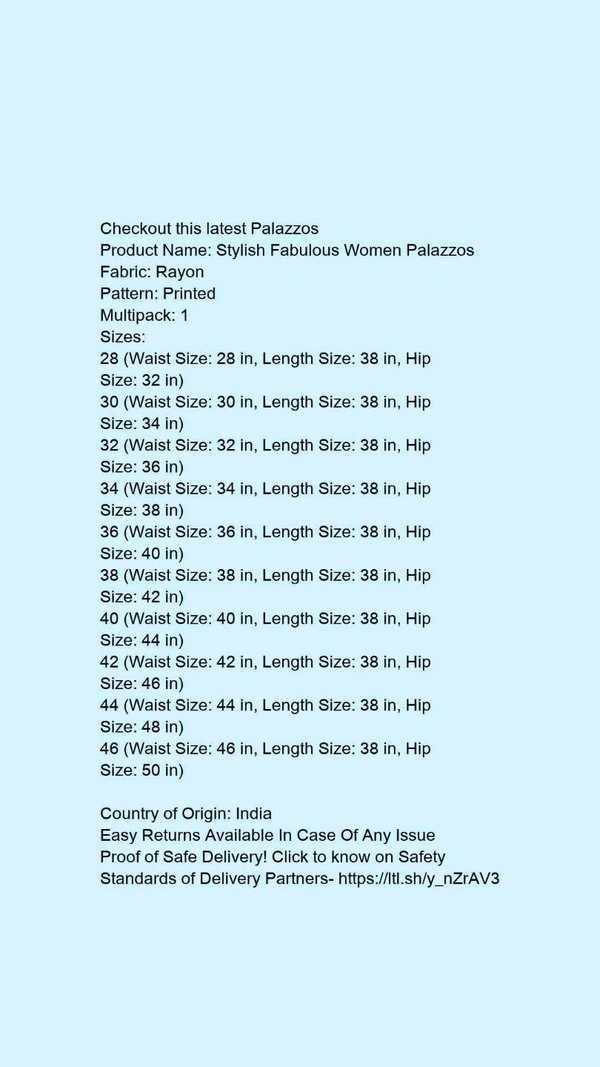 Product Name: *Stylish Fabulous Women Palazzos*Fabric: RayonPattern: PrintedMultipack: 1
