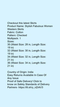 Product Name: *Stylish Fabulous Women Western Skirts*Fabric: CottonPattern: CheckedMultipack: 1