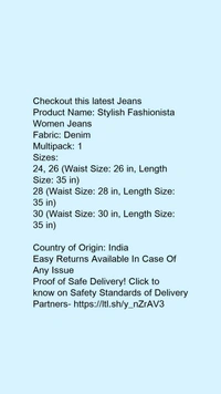 Product Name: *Stylish Fashionista Women Jeans*Fabric: DenimMultipack: 1