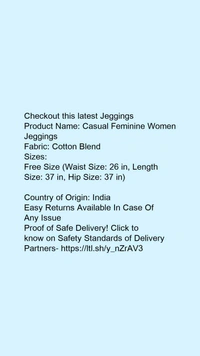 Product Name: *Stylish Glamarous Women Jeggings*Fabric: Cotton Blend