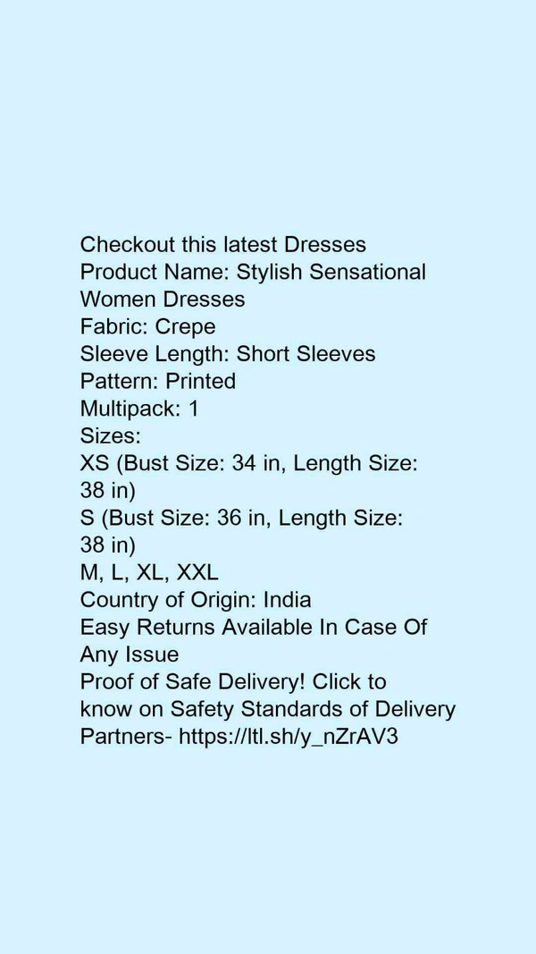 Product Name: *Stylish Modern Women Dresses*Fabric: CrepeSleeve Length: Short SleevesPattern: PrintedMultipack: 1