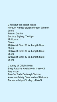 Product Name: *Stylish Modern Women Jeans*Fabric: DenimSurface Styling: Tie-UpsMultipack: 1