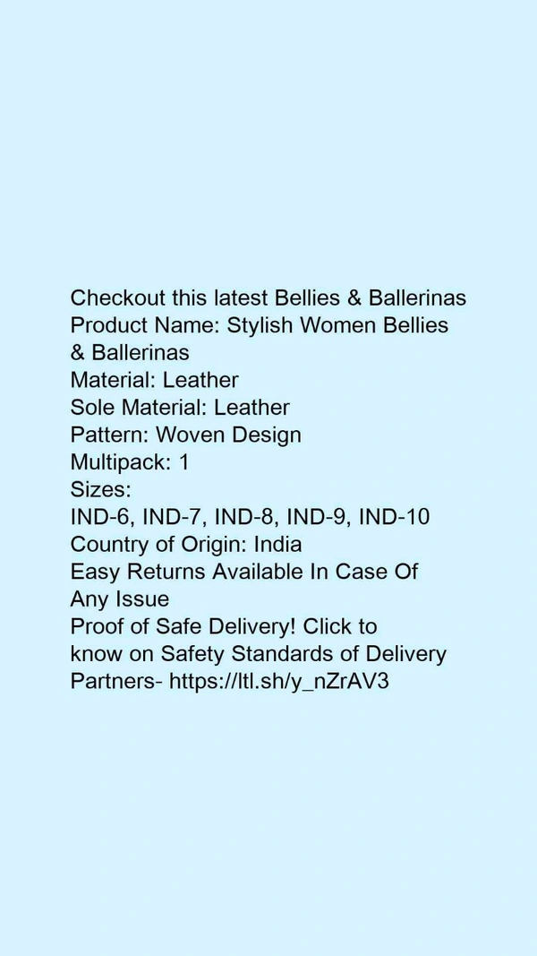 Product Name: *Stylish Women Bellies & Ballerinas*Material: SyntheticSole Material: PvcPattern: SolidMultipack: 1