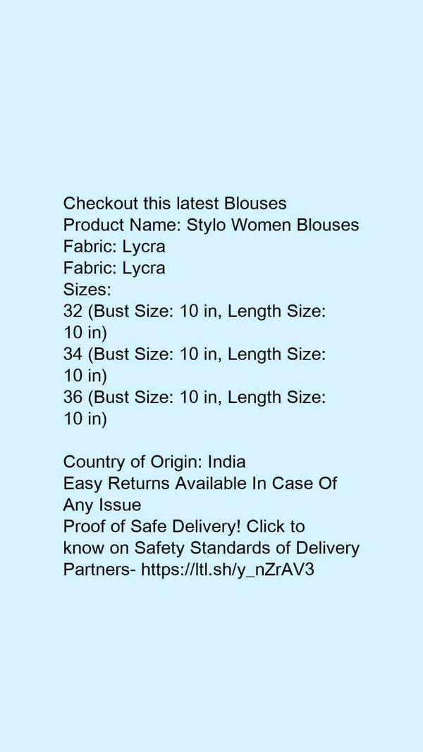 Product Name: *Stylo Women Blouses*Fabric: LycraFabric: Lycra