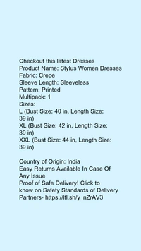 Product Name: *Stylus Women Dresses*Fabric: CrepeSleeve Length: SleevelessPattern: PrintedMultipack: 1