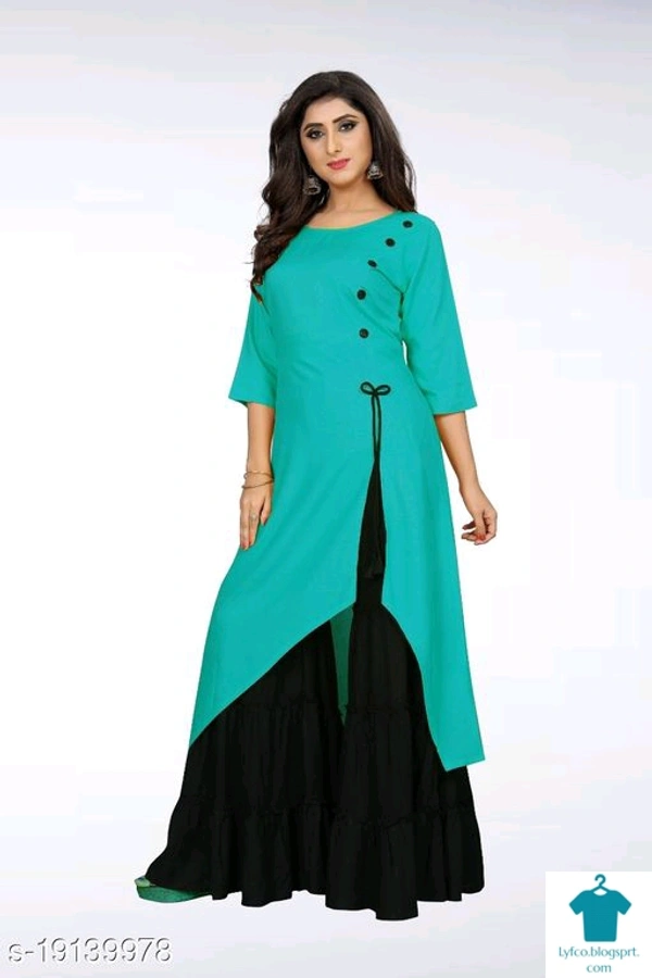 Product Name: *Tiya Alluring Attractive Women's Kurti With Sharara*Fabric: RayonSleeve Length: Three-Quarter SleevesPattern: SolidCombo of: Single
