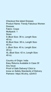 Product Name: *Trendy Fabulous Women Dresses*Fabric: CrepeMultipack: 1