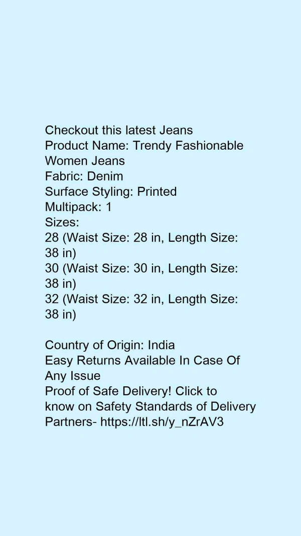 Product Name: ❤️ *Trendy Fashionable Women Jeans*Fabric: DenimSurface Styling: PrintedMultipack: 1