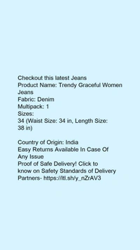 Product Name: *Trendy Graceful Women Jeans*Fabric: DenimMultipack: 1