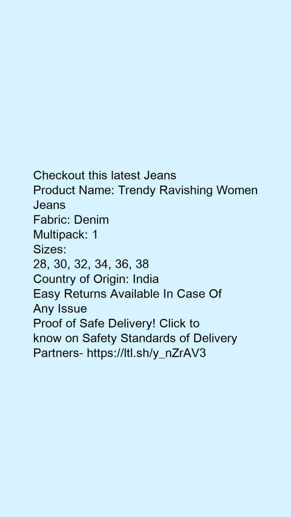 Product Name: *Trendy Ravishing Women Jeans*Fabric: DenimMultipack: 1