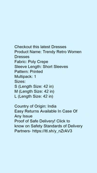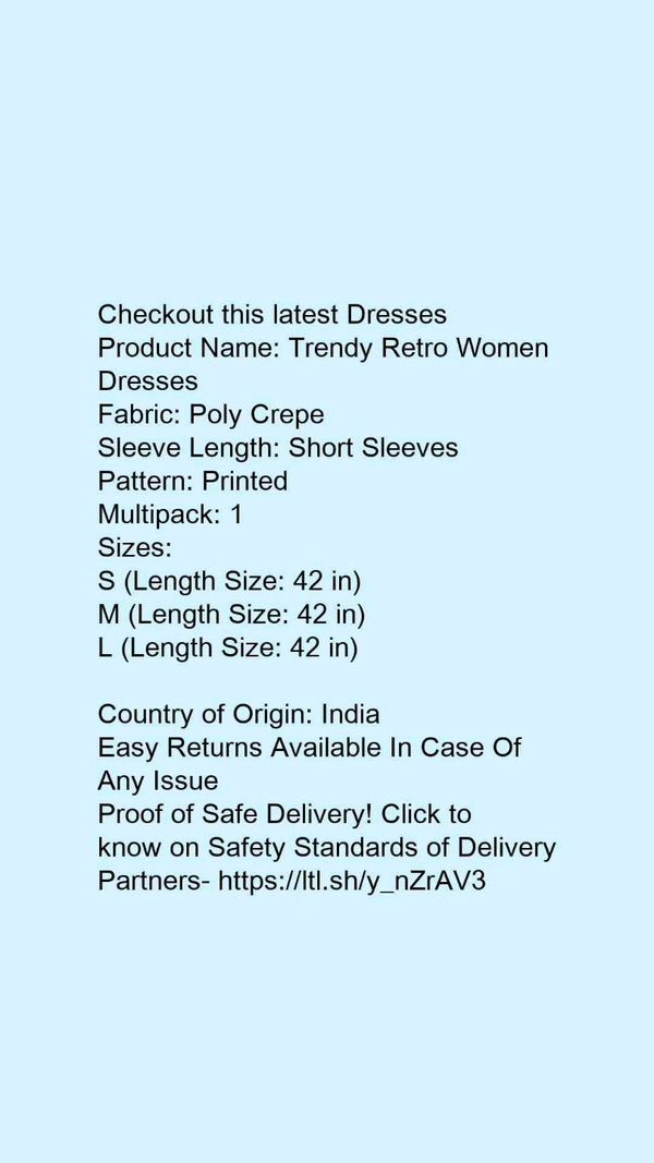 Product Name: *Trendy Retro Women Dresses*Fabric: Poly CrepeSleeve Length: Short SleevesPattern: PrintedMultipack: 1